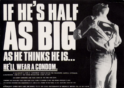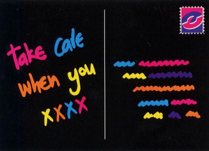 Online Exhibitions/ResourcesPostcards from the Take Care HIV Awareness CampaignThe Take Care campaign in Lothian began in the late 1980s in response to the realisation that cases of HIV and AIDS in the area were four times the national average, affecting mainly young heterosexual people. The campaign was intended to raise awareness amongst all members of the community, and involved advertising, events, and education. The postcards shown below demonstrate some of the images which were used in the campaign to portray the message of safe sex and 'taking care of the one you love'. The Take Care collection came to LHSA in 2000, and consists of administrative files, information packs, reports and research, advertising materials, postcards and posters, audio visual items and objects. You can see a catalogue to the collection here. In 2015, based mainly on this collection, resources for teachers in secondary schools and youth groups will be launched. The resources will focus on the Curriculum for Excellence structure and will also be useful for youth groups. Each resource highlights specific resources in the HIV/ AIDS collection in the LHSA. A fact sheet gives the background to the resources shown and suggested activities are included. Please click on the images below to view, you can scroll between displayed images by hovering your mouse in the top right or left of each image. |